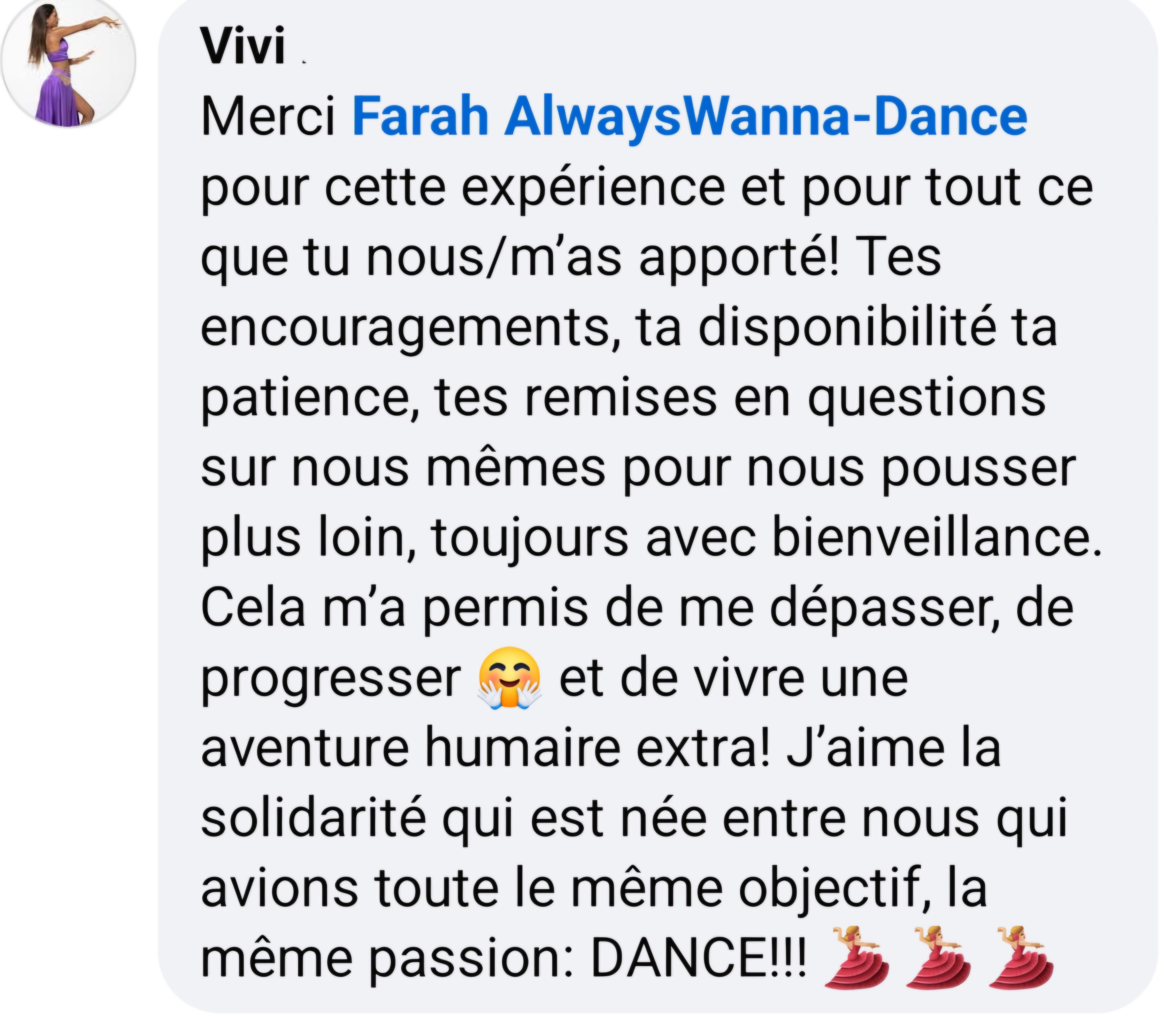 > Apprends au maximum lors des prochains cours et stages (Technique, Style, Attitude, Musicalité, Mémoire du corps...)